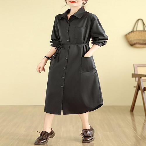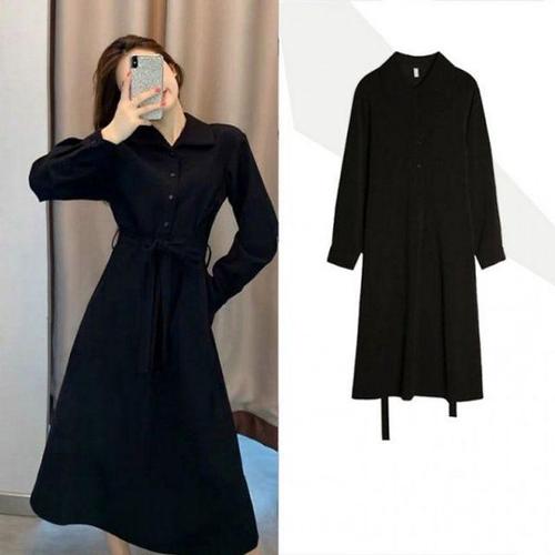 날씬라인셔츠형 블랙원피스 정돈된 허리끈 이지