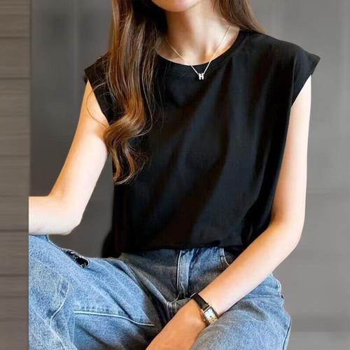 라운드 슬럽 면 이중소매 나시티셔츠 DAI-WSH-0519-블랙
