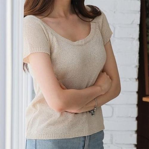 Latium HC06 스판 품 넉넉한 캡소매 브이넥 펄 민소매 니트티 T2552sw08P