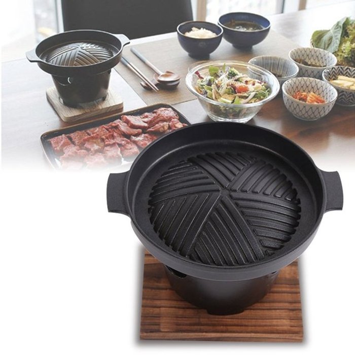 Roollabana 고기집숯불화로 삼겹살 바베큐 불판 그릴 주물 식당 숯불 캠핑 스토브 소형 고기불판 고깃집