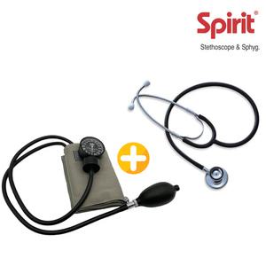스피리트 수동식 메타 혈압계 CK-110 아네로이드방식 + 일본 산케이 양면 청진기 세트 병원용 실습용 간호사용