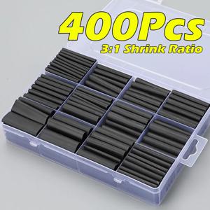 400개 열수축 튜브 키트-3:1 비율 접착제 라이닝, 해양 등급 수축 랩 - 산업용 열수축 튜브 - 검정색