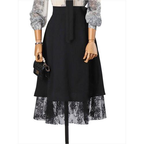 [쉬즈나인]앙코르 레이스 배색 리본스커트