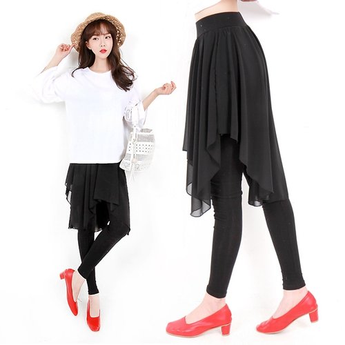 [옷자락] 여자 봄 발레코어룩 쉬폰 언발 레깅스 샤스커트 치마