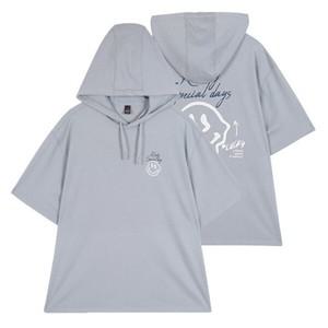 Asure 봄 가을 루즈핏 캐주얼 무지 스마일 패턴 후드 얇은 기모 맨투맨 1+1