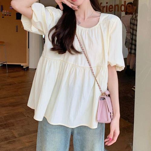 VERIT 스퀘어넥 벌룬 와이드핏 반팔 블라우스 VT422