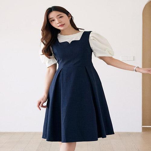 [스타일온미][루이스엔젤] SS 하트넥 레이어드 플레어 원피스