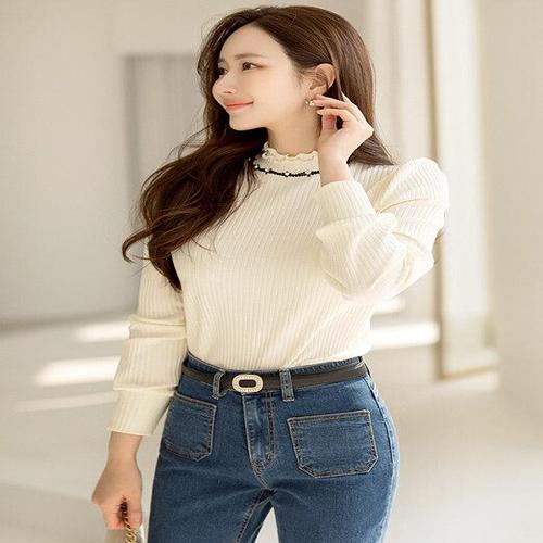 [스타일온미][루이스엔젤] 보드레 러플 골지 폴라 티셔츠