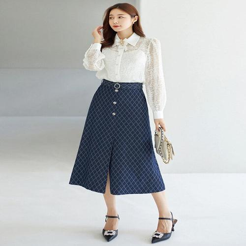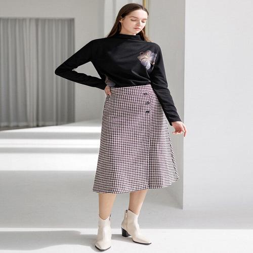 [스타일온미][루이스엔젤] 브리짓 투톤 하운드 체크 사이드 버튼 L라인 스커트