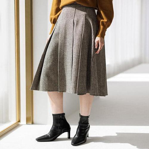 [스타일온미][루이스엔젤] 네드 울 블렌딩 하운드 체크 플리츠 스커트