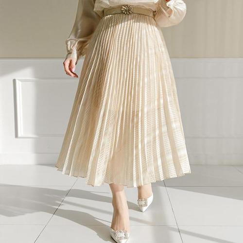 [스타일온미][루이스엔젤] 여리여리 사선체크 쉬폰 플리츠 롱 스커트