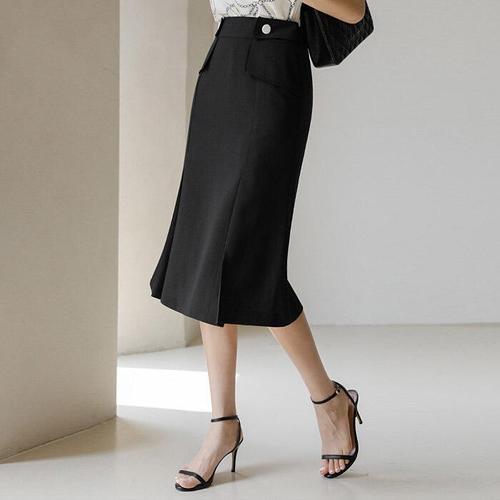 [스타일온미][스타일온미] 플랩 실버버튼 비조 미디 머메이드 스커트