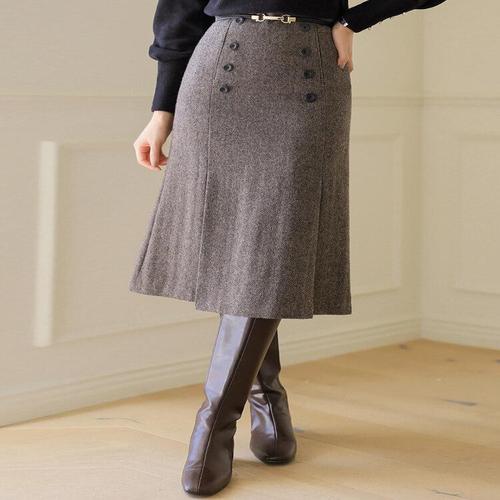 [스타일온미][루이스엔젤] 마르에 핀탁 더블버튼 헤링본 스커트