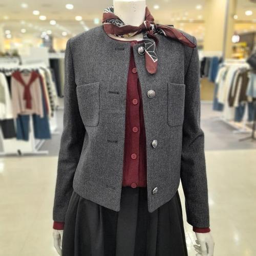 [비꼴리끄(여성)]울 블랜디드 자수 노카라 자켓 B252WJ3050