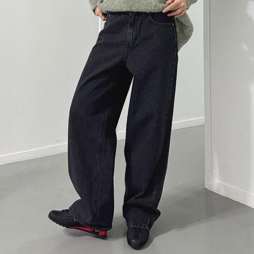 [옷자락] 여자 스트라이프 와이드핏 논스판 발염 루즈 청바지