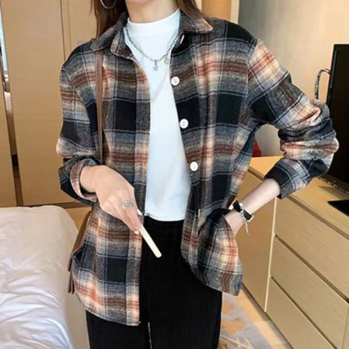 [마담엘레강스][마담엘레강스] 멀티 체크 기모 셔츠형 재킷 K243JK01