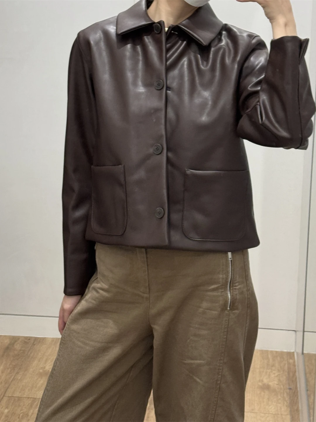 캐주얼 패셔너블 레더렛 숏 재킷 여성 아우터웨어 스탠드 칼라 재킷 가을 겨울 신상품 AL480060