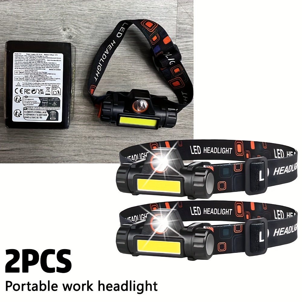 TEMU 2개 세트 MACROCOSM USB 충전식 헤드램프 - 듀얼 모드 밝은 착용형 헤드라이트, 작업, 하이킹, 비상용, 낚시, 캠핑, DIY에 적합 - 헤드라이트
