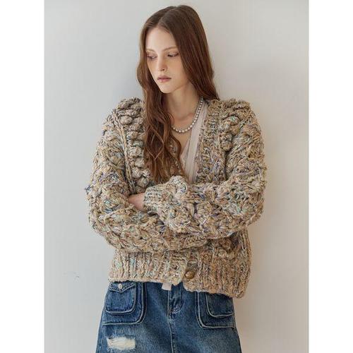 [마쟈]핸드메이드 스팽글 컬러믹스 케이블 니트 가디건