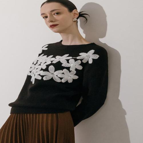 [GGPX]스팽글 플라워 디테일 니트 (GPAKP055F)