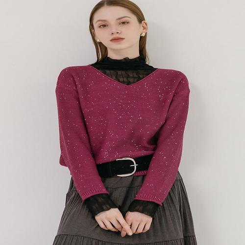 [막스까르띠지오]스펭글 딥 브이넥 컬러 니트