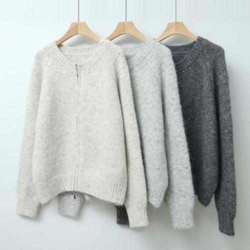 [다잇템]여성 클래식 박시 반짝 스팽글 집업 니트