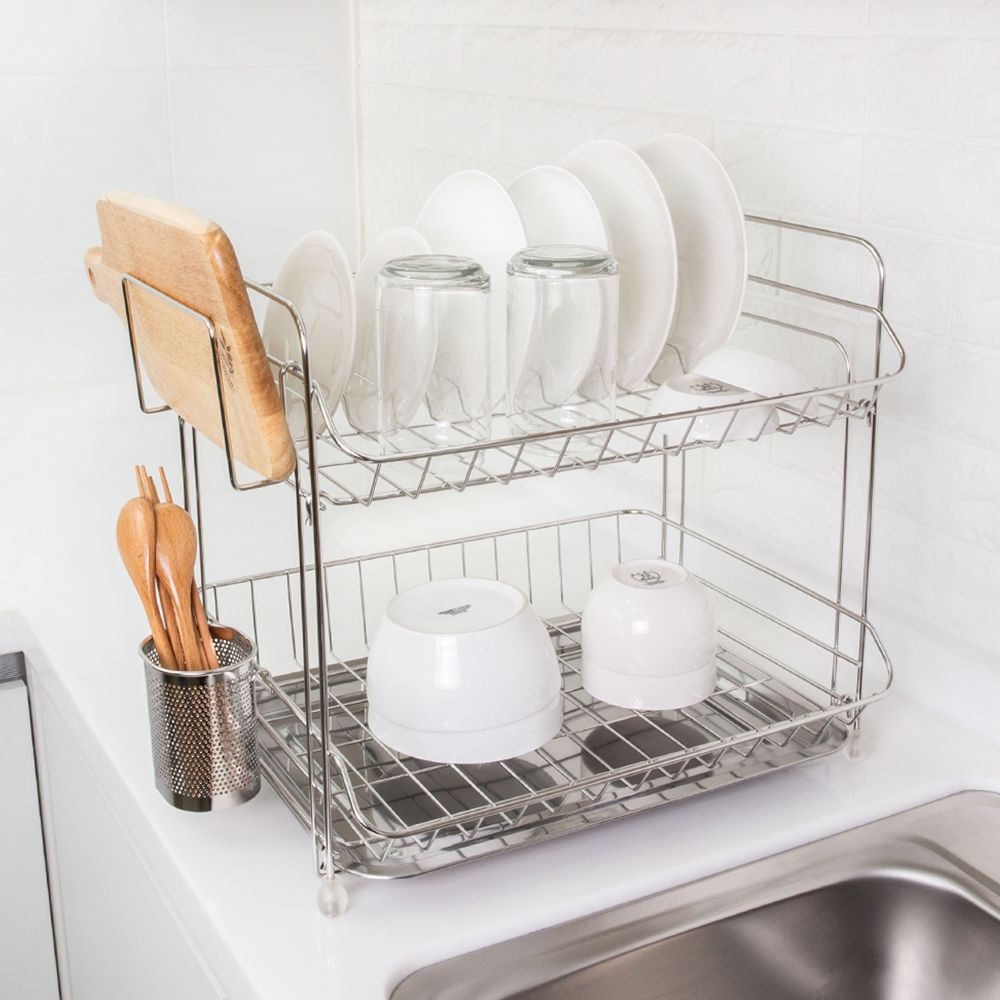 올스텐 슬라이드 물빠짐 주방 무타공 설거지 싱크대 2단 식기건조대 C(AS)