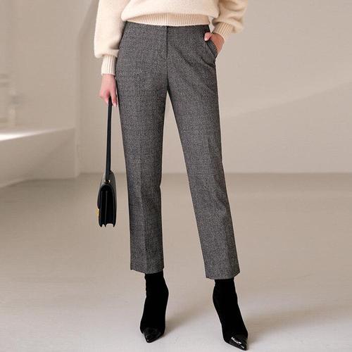 겨울 체크 모직 슬랙스 슬림핏 융털 기모 바지 PT998