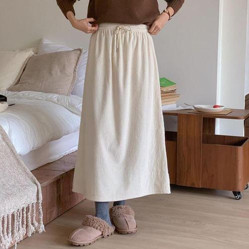 [다잇템]여자 보온 슬릿 골덴 에이라인 고무줄 롱스커트