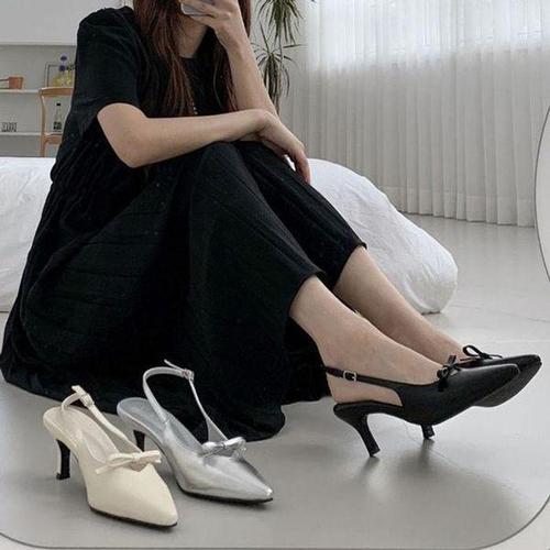 [셀러허브_여성트랜드패션]ONM 리본 디테일 슬링백 미들힐 포인트 슈즈 5FW