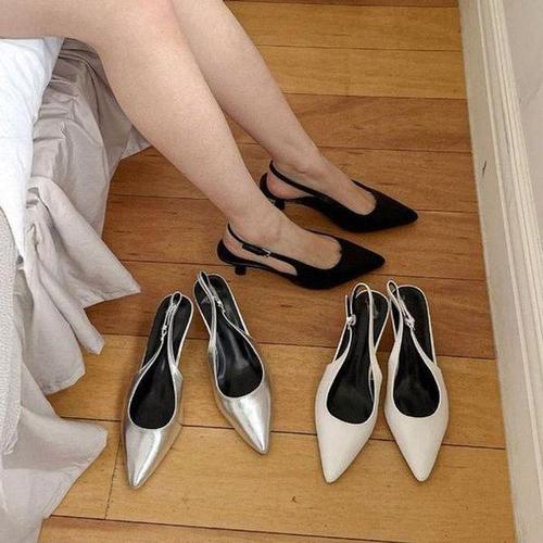 [애슬릿] 여성 뾰족 앞코 슬링백 힐 7cm