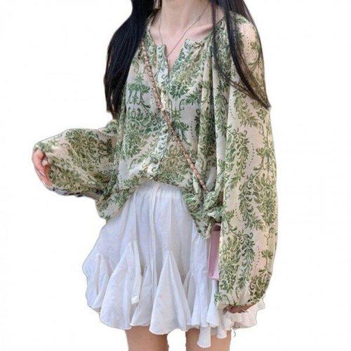 [모노무드]MNO 플로럴프린트 베스트 셔츠 릴랙스핏 시그니처우먼 비침소재 긴팔옷