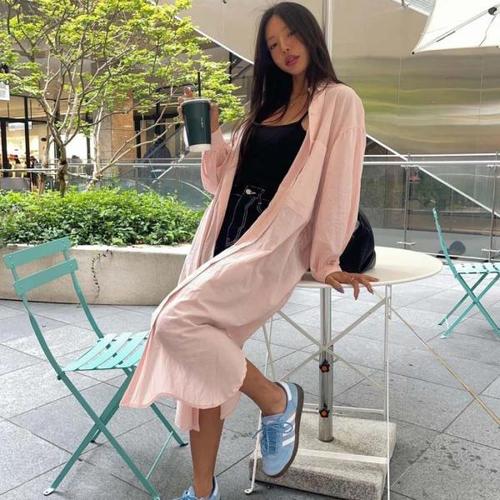 [미라클세븐]여성 여행용 시스루 긴팔 루즈핏 롱 셔츠