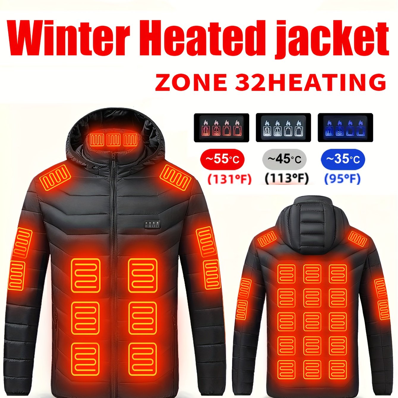 TEMU 남성용 USB 시스템 내장 히팅 재킷, 32존 올웨더 보온, 후드 겨울 스포츠 코트 - 스키, 등산 및 아웃도어 활동용 (USB 미포함), 세탁기 사용 가능한 소프트 디자인, 지퍼