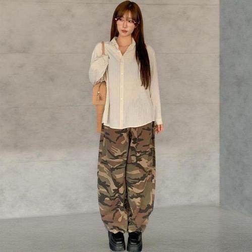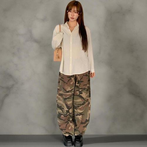 [옷자락]여성 미세 줄무늬 루즈핏 면혼합 시어서커 셔츠