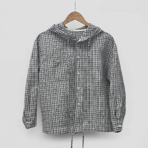 [옷자락] 여성 시어서커 체크 후드 스트랩 크롭 셔츠