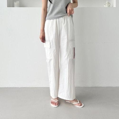[에이치플러스몰]시원한 일자바지 여성 허리밴딩 여름 바스락 카고팬츠