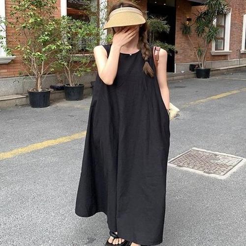 [셀러허브_여성트랜드패션]ONM 뒷트임 소재 여성 A라인 원피스 시원한 민소매 여름