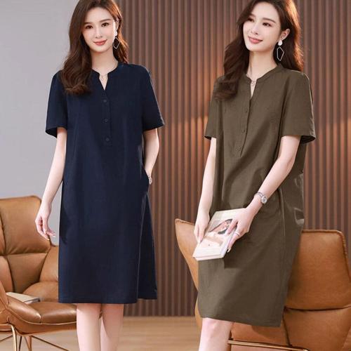 [블로썸스틸]여자 브이넥 시원한 소재 반팔 원피스
