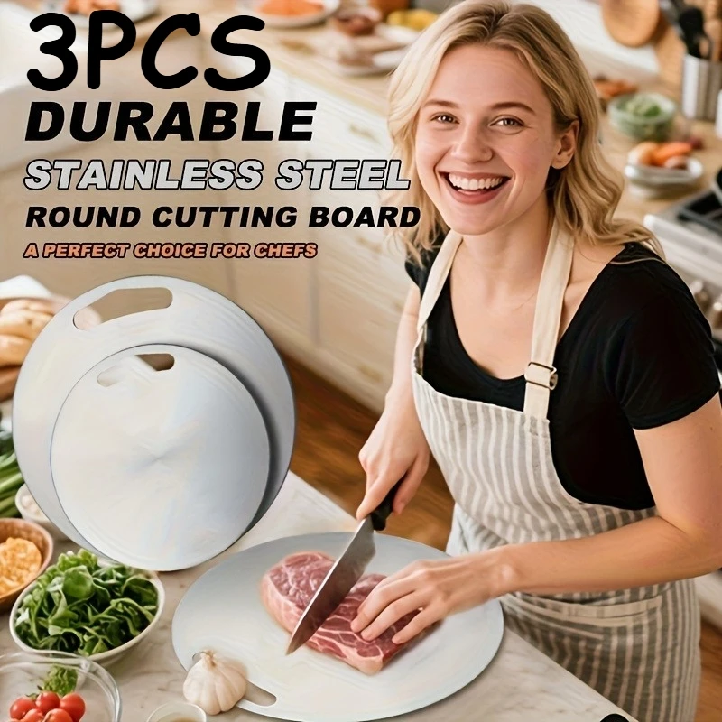 TEMU 3개 스테인리스 스틸 도마 세트 - 양면 식품 등급 201 스테인리스 스틸, 부드러운 표면으로 주방 및 식사용, 내구성 있고 쉽게 청소할 수 있음, 요리 준비, 야채 슬라이싱, 고기 절단에 완벽함, 주방 필수품 | 현대적인 주방 용품 | 튼튼한 주방 용품