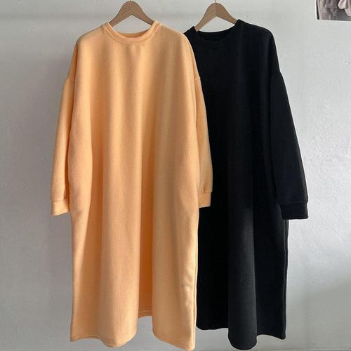 [다잇템_패션]여자 펌킨 라글란 워싱면 큰사이즈 롱원피스