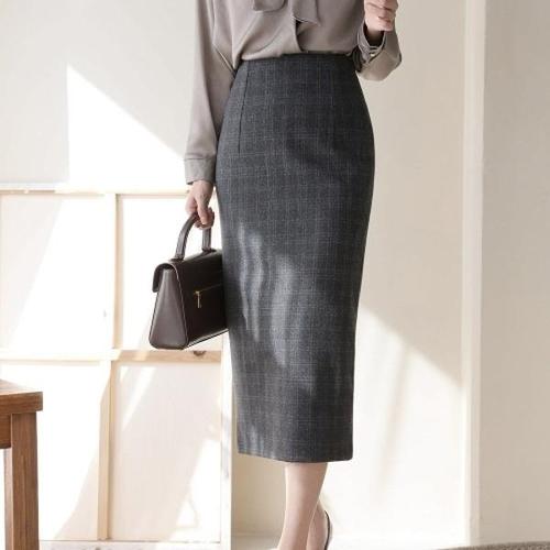 [다잇템][다잇템] 여자 일자 격자 겨울출근룩 슬릿 큰사이즈 롱스커트_23584098_588872
