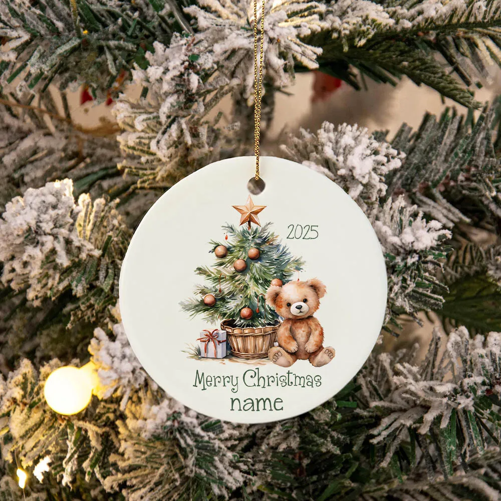 1개 맞춤형 2025 세라믹 크리스마스 장식품 - 홀리와 선물 디자인의 맞춤 이름, 가정 장식 또는 기념품으로 이상적
