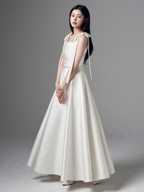 [드레썸] 블로썸 브라이덜 셀프 웨딩 리본 미카도 드레스 - 아이보리 화이트