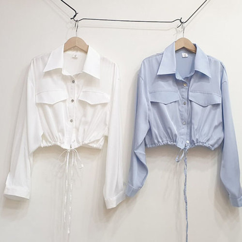 슈팅스타 / (국산) 크롭 실크느낌 스트링 블라우스
