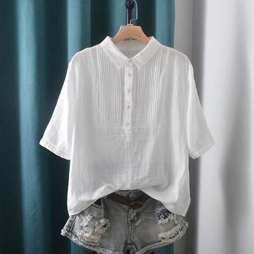 셔츠 무지 카라 루즈핏 베이직 블라우스 5부반팔 (3xlym)