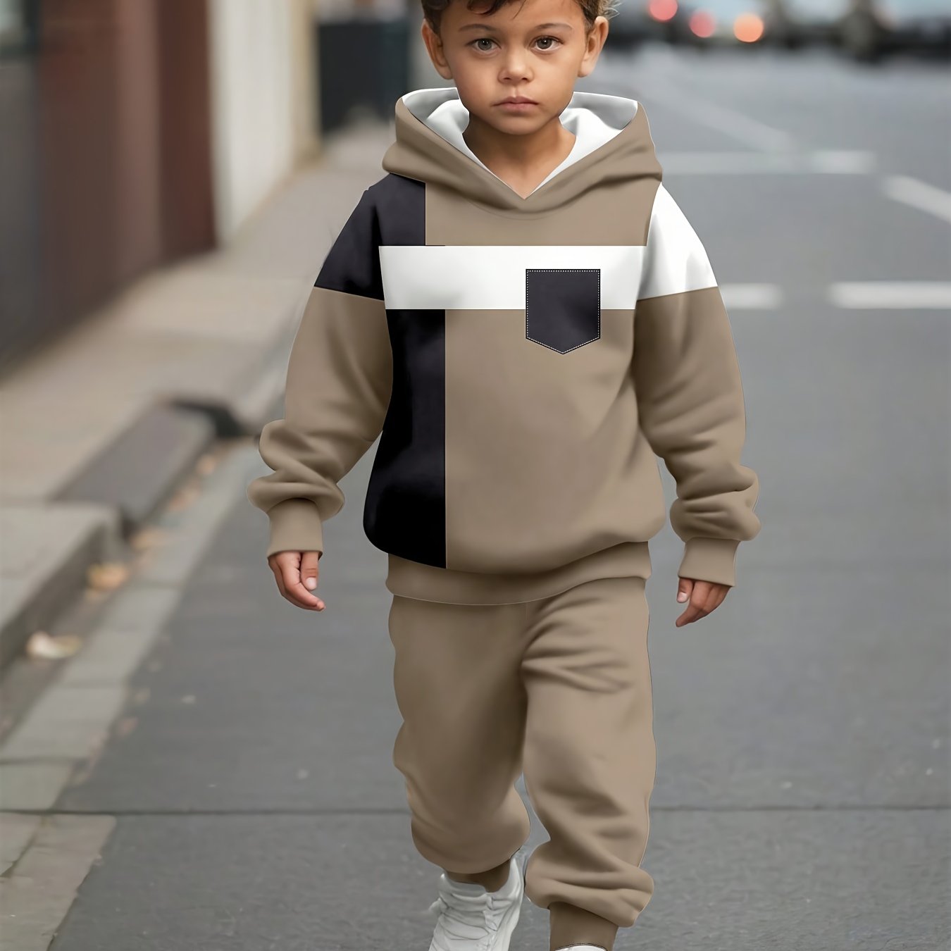 TEMU 2개 남아 남아용 편안한 캐주얼 스포츠 후드티 및 바지 세트 | 프린트, 골지 커프스, 가을/겨울용 기모 안감, 약간의 스트레치 원단, 1-8세 적합, 야외복으로 이상적