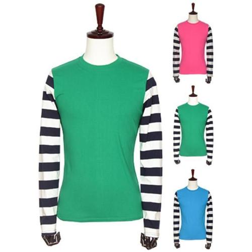 스트라이프 배색 얇은 카라 티셔츠 PT 남성 남자 간절기