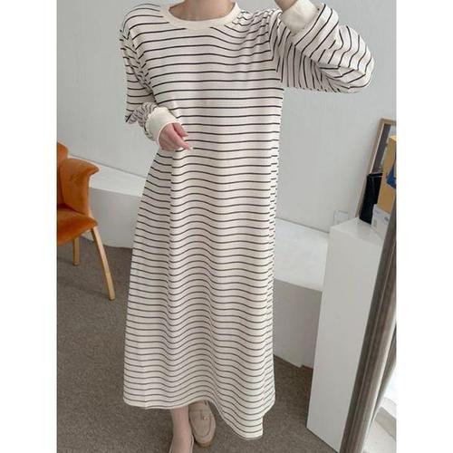 샵앤) 국산 여성 라운드 임부 단가라 롱원피스 LL-WDR-4846-아이보리
