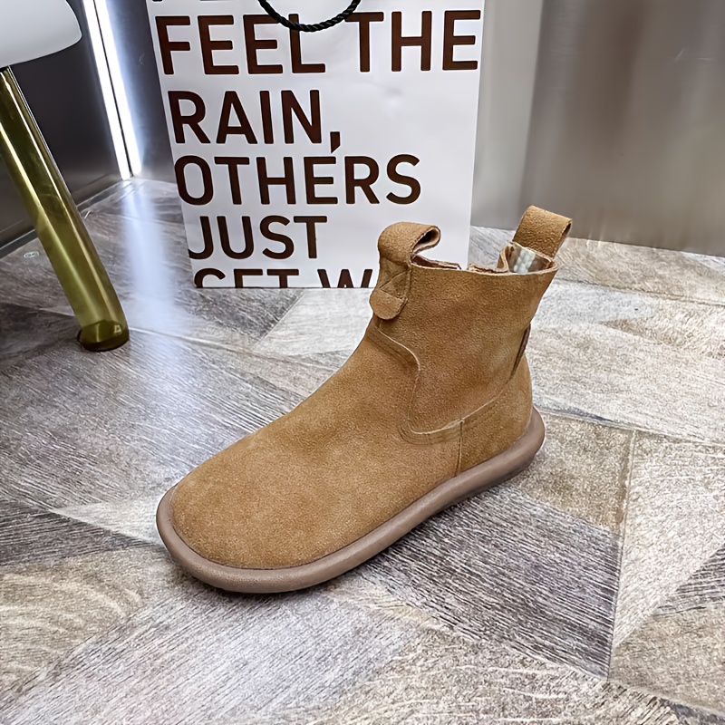 TEMU 여성용 따뜻한 겨울 앵클 부츠, 편안한 안감 플랫 부츠, 슬립온 라운드 토 솔리드 컬러 미드 캐프 패션 부츠 (중장년 및 노년층용)|여성운동화